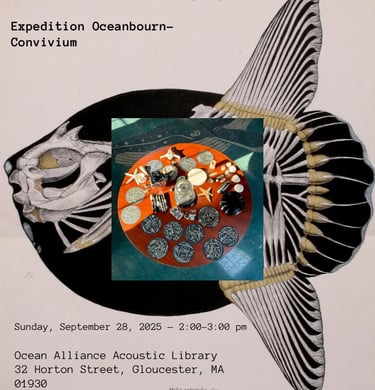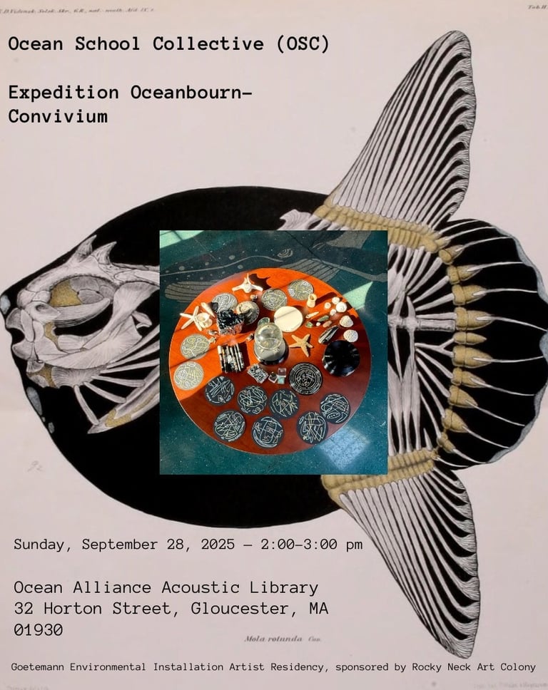 "Expedition Oceanbourn," a temporary Open Art School and Speculative Fabulation durational performance by Ocean School Collective at the Ocean Alliance for the 2025 Goetemann Environmental Installation Artist Residency, sponsored by Rocky Neck Art Colony, September 4 - 28, 2025.